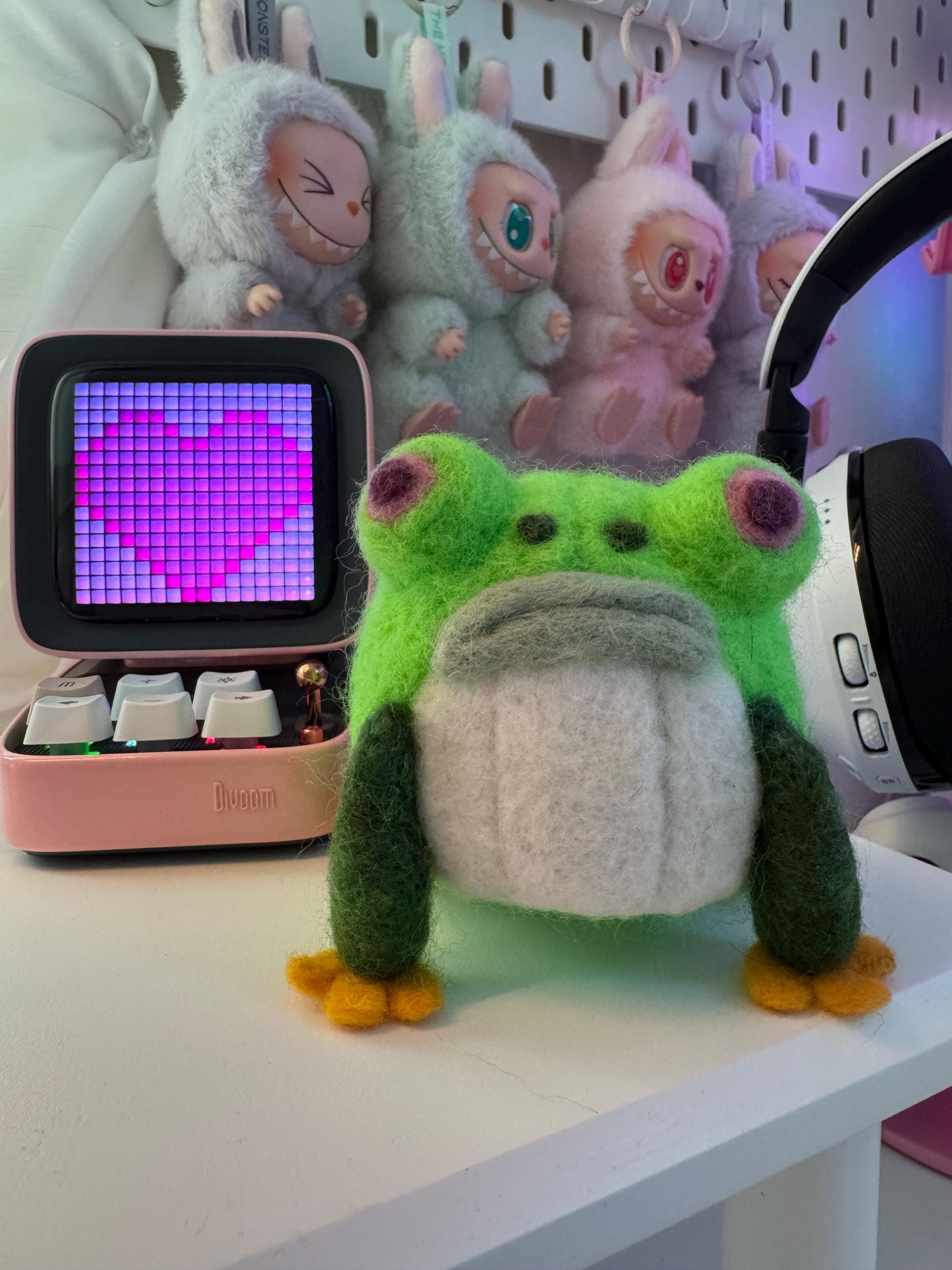 You've seen his big brother; now meet His Mini Lordship. This needle felted Frogbert from Palia is a charming handcrafted creation perfect for fans of the cozy game. This adorable figurine is lovingly made using 100% wool, ensuring it captures the vibrant colors and unique features of Frogbert. Measuring approximately 3 inches tall, it fits effortlessly on your shelf, desk, or as a charming addition to any collection.