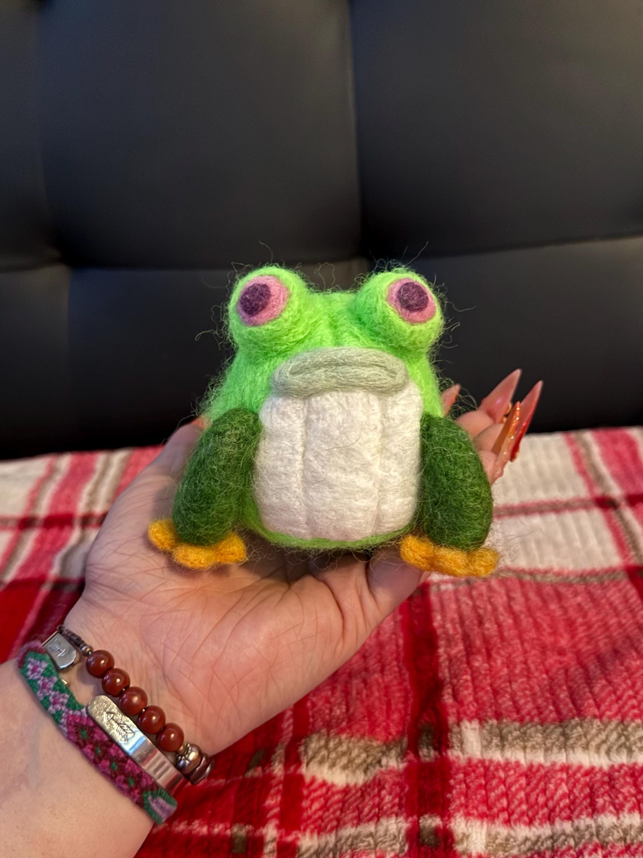 Caring for your Mini Needle Felted Frogbert is simple! Keep it dry and dust it occasionally to maintain its charm. Keep it out of direct sunlight to preserve the colors. This handmade piece is not just a decoration; it's a connection to the world of Palia. Bring a touch of whimsy to your home or surprise a fellow gamer with this delightful gift that celebrates creativity and craftsmanship.